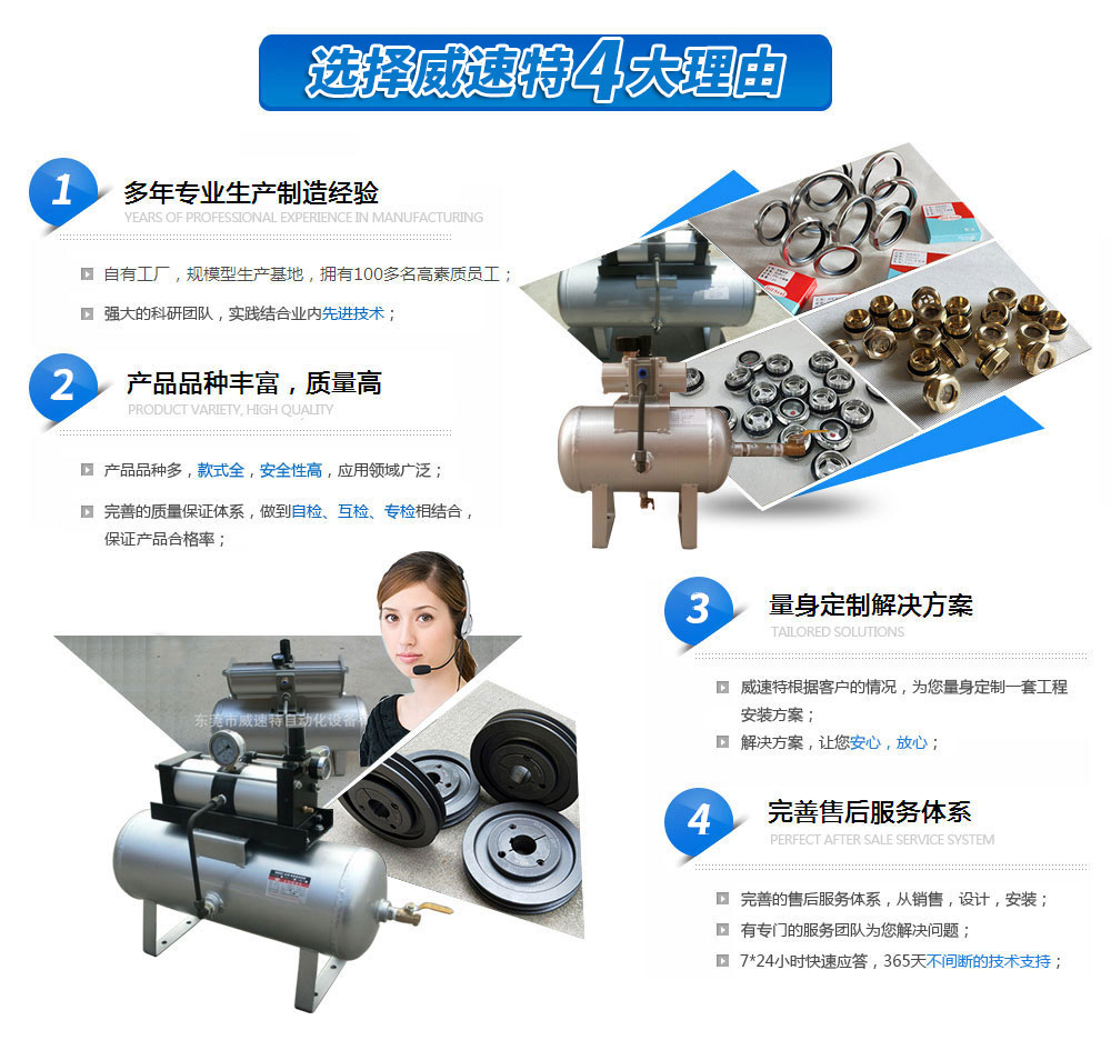 威速特自動(dòng)化設(shè)備有限公司多年來致力于氣動(dòng)設(shè)備省力改良。主要銷售自動(dòng)化設(shè)備、通用機(jī)械設(shè)備、工業(yè)設(shè)備及配件、氣動(dòng)設(shè)備及配件、五金機(jī)電產(chǎn)品等。主要產(chǎn)品有空氣增壓泵、氣動(dòng)增壓泵、氣動(dòng)增壓閥;儲(chǔ)氣罐;錐套式皮帶輪;電子排水器、空氣脫水器、觀油鏡、油標(biāo)、W962底座、油封、彈簧式安全閥、油路清洗劑、……[查看詳請]